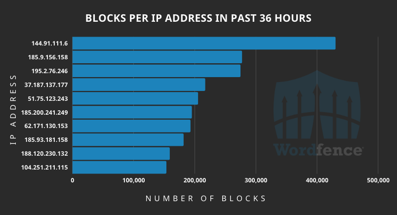 Isso levou a uma investigação que descobriu um ataque ativo direcionado a mais de um milhão de sites WordPress. Nas últimas 36 horas, a rede Wordfence bloqueou mais de 13,7 milhões de ataques direcionados a quatro plug-ins diferentes e vários temas do Epsilon Framework em mais de 1,6 milhão de sites e originados de mais de 16.000 endereços IP diferentes.