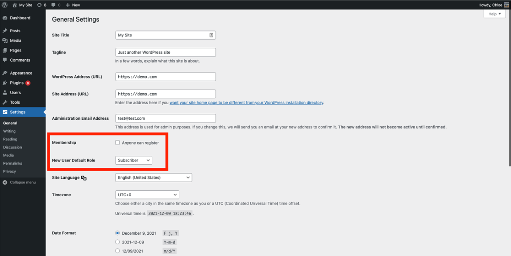 Também é importante revisar as configurações do site e garantir que tenham sido restauradas ao estado original. Você pode encontrar essas configurações na página /wp-admin/options-general.php. Certifique-se de que a configuração `Membership` esteja corretamente configurada para habilitada ou desabilitada, dependendo do seu site, e valide se a` New User Default Role` está apropriadamente configurada. Recomendamos fortemente não usar `Administrador` para a nova função padrão do usuário, pois isso pode levar ao comprometimento inevitável do site.