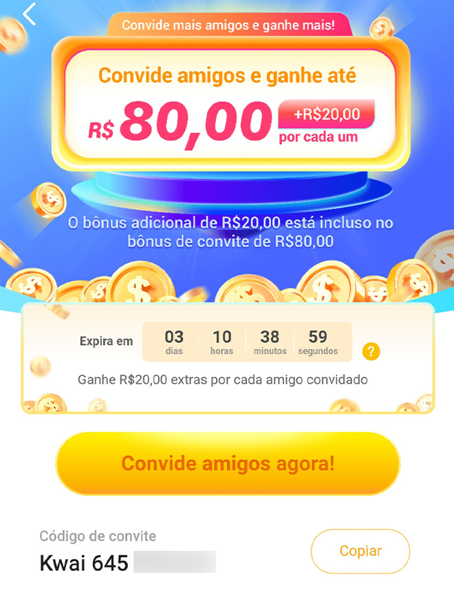 Portanto, para conseguir maiores quantias de dinheiro pela plataforma, a recomendação é conseguir o maior número de cadastros com o seu código de convite. Afinal, cada nova conta vinculada resulta em uma nova sequência de visualizações diárias. Conforme as regras do Kwai, essa tarefa pode ser iniciada em até 45 dias após o primeiro login no app.