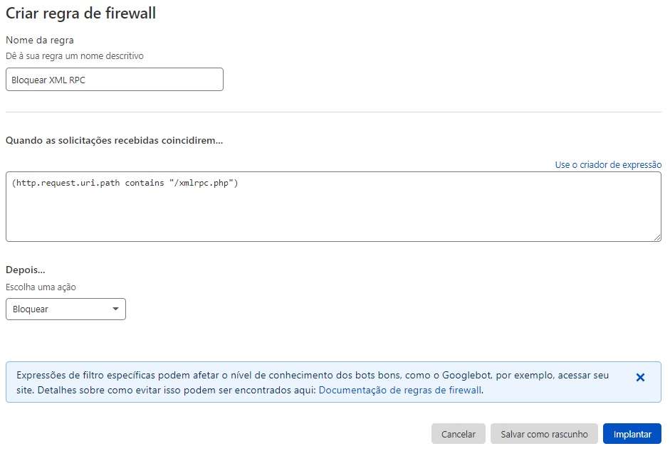 Como bloquear o xmlrpc.php usando a Cloudflare