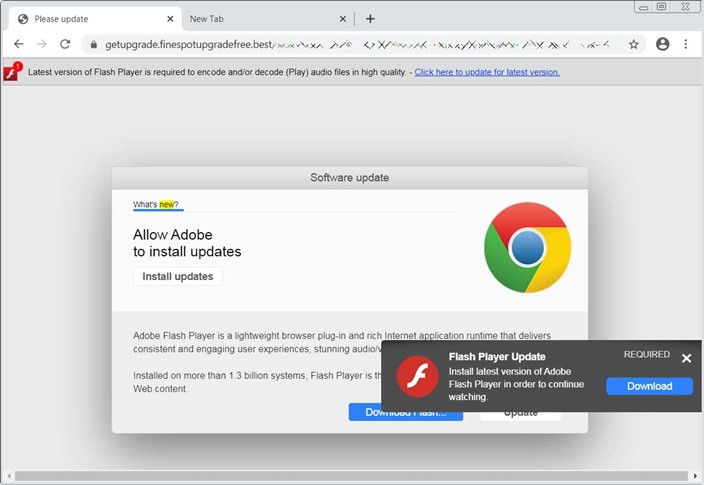Quando o servidor é atacado, uma linha de código de JavaScript inclui scripts de sites admarkelocation e gotosecond2 no tema usado no WordPress. Isso acaba redirecionando os visitantes para outros domínios que mostram notificações de assinatura, pesquisas falsas, sorteios fraudulentos e downloads do Adobe Flash.