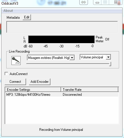 Abra o Oddcast V3, para que a tela abaixo seja exibida: